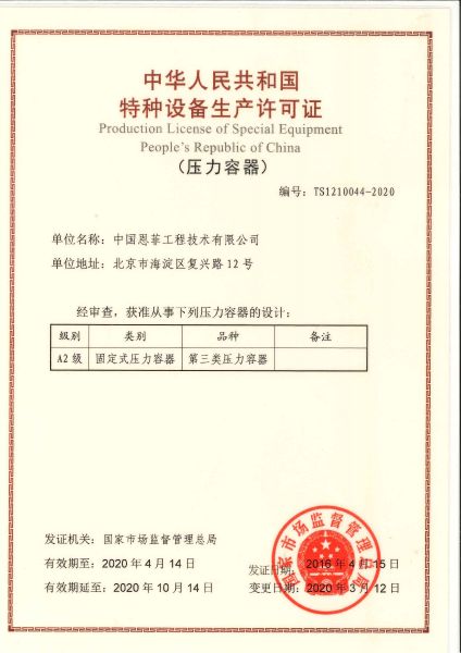 中华人民共和国特种设备生产许可证(客运索道制造)