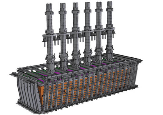 自主开发的专利产品 ,由倒梯形炉体结构、整体弹性骨架及电极装置组成 ,RKEF火法炼镍铁的焦点设备。